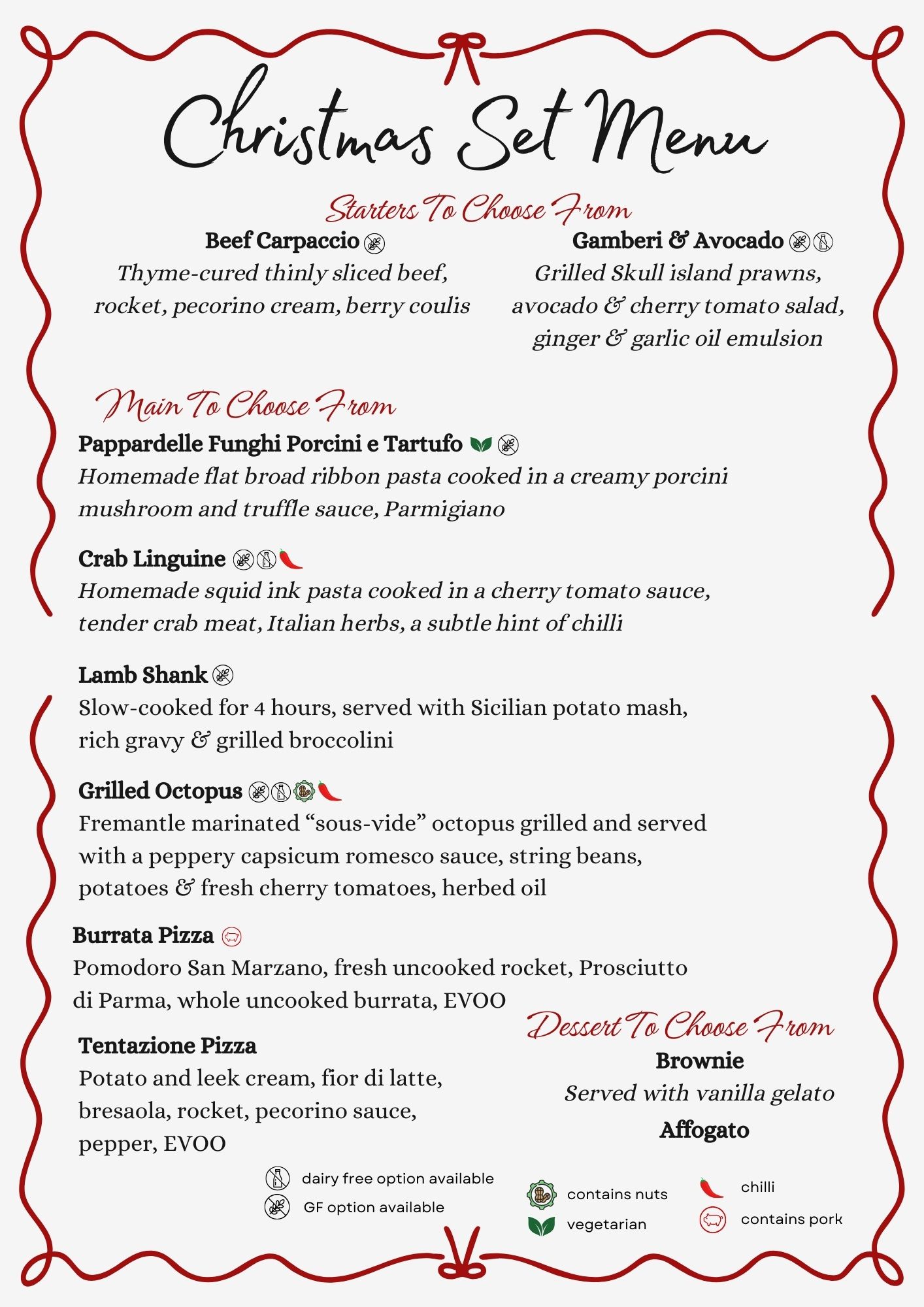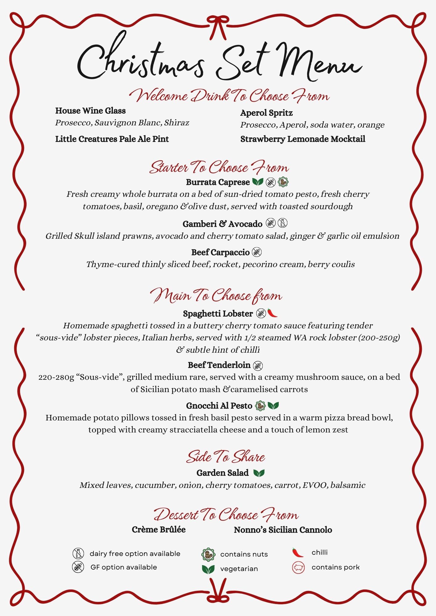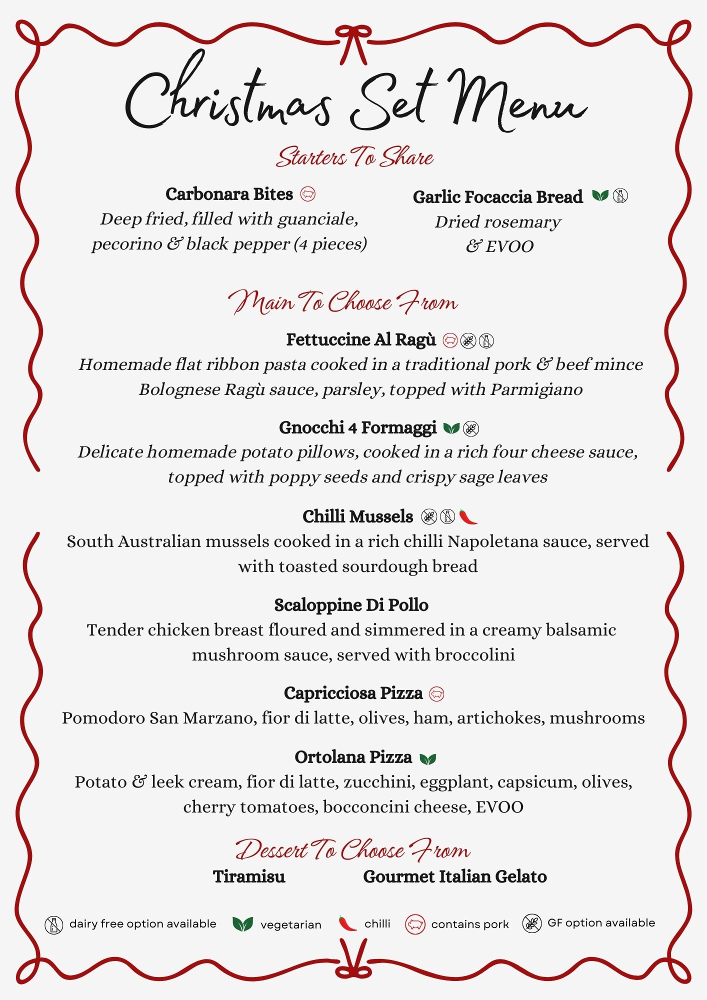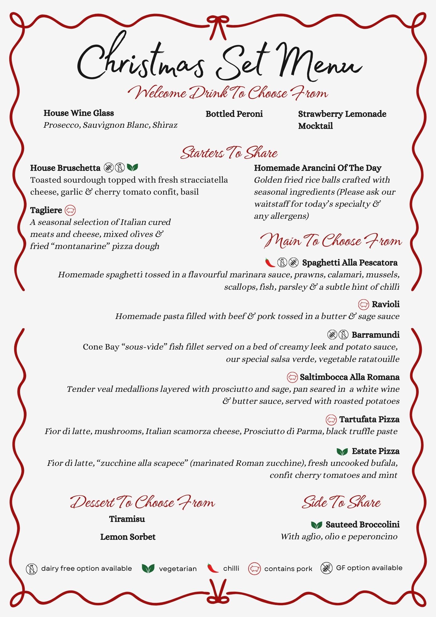 All menus can be modified to meet dietary requirements. A minimum of 12pax per booking is needed for set menus